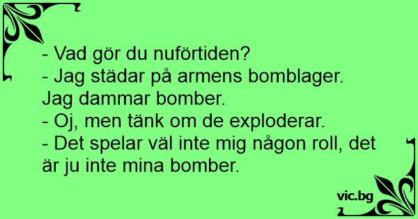 - Jag städar på armens bomblager. Jag dammar bomber.