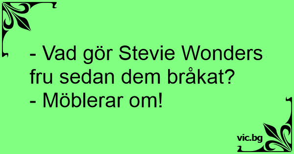 Заете ли как са наказвали Стиви Уондър като малък? Как родителите на Стиви Уондър са го наказвали като малък? ¿Qué hace la mujer de Stevie Wonder cuando se pelean?. Was macht Stevie Wonders Frau, wenn die beiden Streit haben? - Sie stellt die Möbel um. Comment faisaient les parents de Stevie Wonder / Ray Charles / Gilbert Montagné pour le punir quand il était petit? - Ils changeaient les meubles de place! Come faceva la mamma di Ray Charles a castigarlo? Cambiava posto ai mobili di casa.