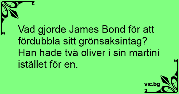 Какво направи Джеймс Бонд, за да удвои приема на зеленчуци? Пие мартинито си с две маслинки, вместо с една