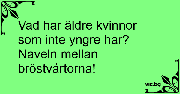 – Vet du vad äldre kvinnor har mellan brösten som inte yngre kvinnor har? – Naveln!!