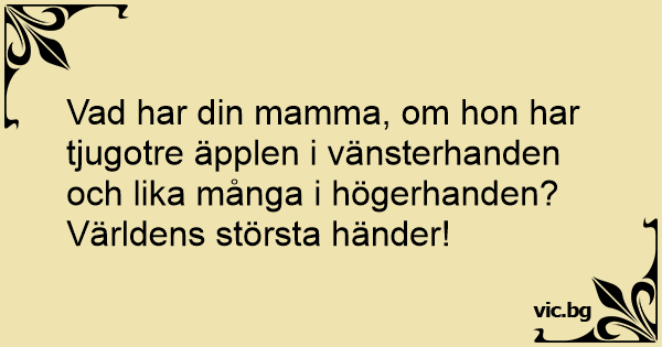 Vad har din mamma, om hon har tjugotre äpplen i vänsterhanden och lika många i högerhanden?