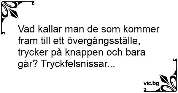 Vad kallar man de som kommer fram till ett övergångsställe, trycker på knappen och bara går? Tryckfelsnissar...