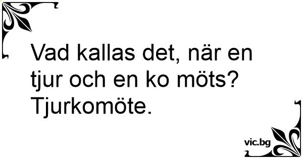 Vad kallas det, när en tjur och en ko möts? Tjurkomöte.