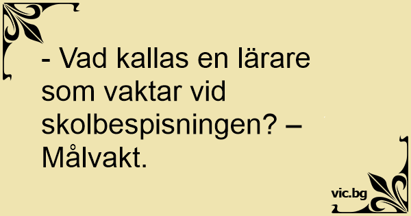 - Vad kallas en lärare som vaktar vid skolbespisningen? – Målvakt.