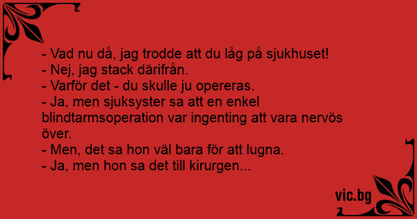 - Vad nu då, jag trodde att du låg på sjukhuset!