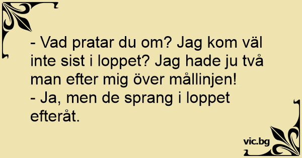 - Vad pratar du om? Jag kom väl inte sist i loppet? Jag hade ju två man efter mig över mållinjen!