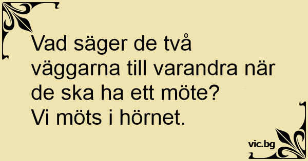 - Vad sa den ena väggen till den andra? - Vi möts i hörnet...
