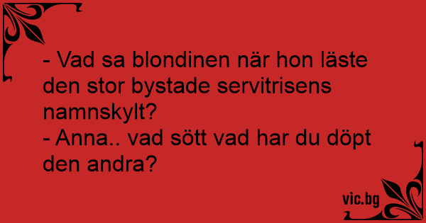 - Vad sa blondinen när hon läste den stor bystade servitrisens namnskylt?