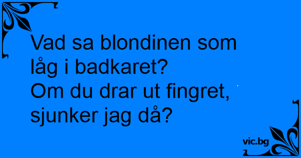 Blondinen og fyren sidder i badekarret. - Blondinen: “Er du nu sikker på at jeg synker, hvis du Trækker fingeren ud?”