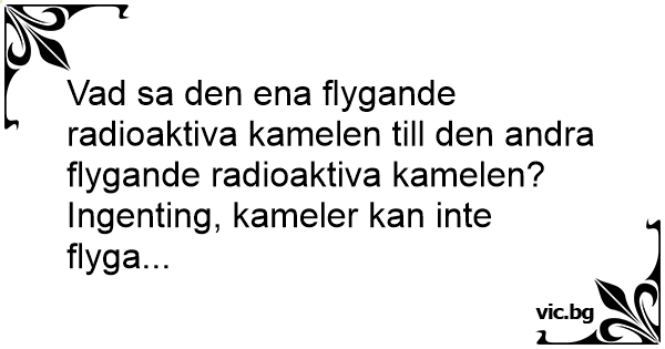 Vad sa den ena flygande radioaktiva kamelen till den andra flygande radioaktiva kamelen?
