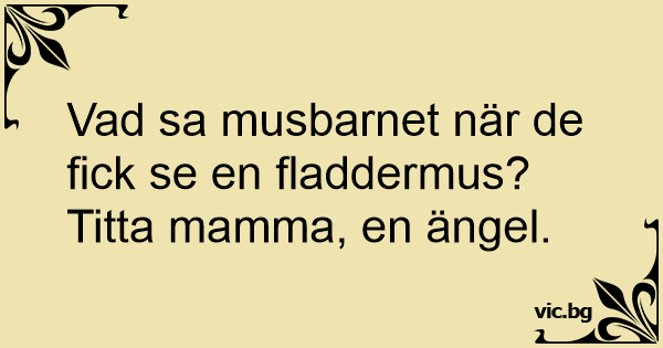 Vad sa musen, när han såg en fladdermus? Åhh titta en ängel.