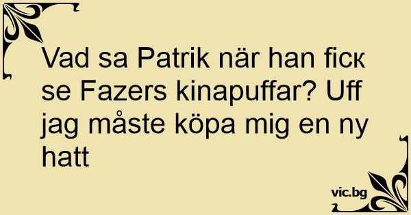 Vad sa Patrik när han fiск se Fazers kinapuffar? Uff jag måste köpa mig en ny hatt