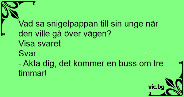 Vad sa snigelpappan till sin unge när den ville gå över vägen?