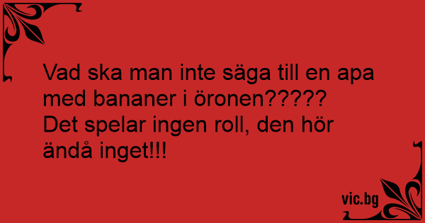 Vad ska man inte säga till en apa med bananer i öronen?????