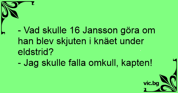 - Vad skulle 16 Jansson göra om han blev skjuten i knäet under eldstrid?