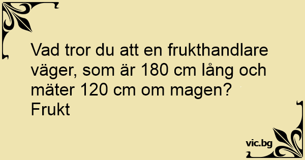 Vad tror du att en frukthandlare väger, som är 180 cm lång och mäter 120 cm om magen?