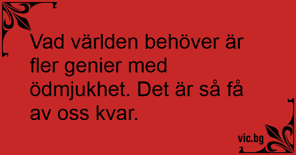 Vad världen behöver är fler genier med ödmjukhet. Det är så få av oss kvar.