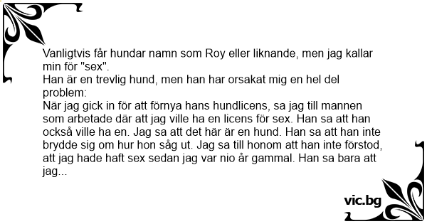 Vanligtvis får hundar namn som Roy eller liknande, men jag kallar min för "sеx".