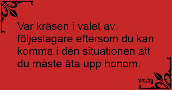 Var kräsen i valet av följeslagare eftersom du kan komma i den situationen att du måste äta upp honom.