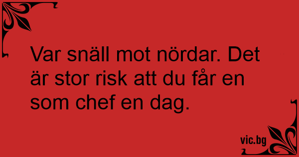 Var snäll mot nördar. Det är stor risk att du får en som chef en dag.