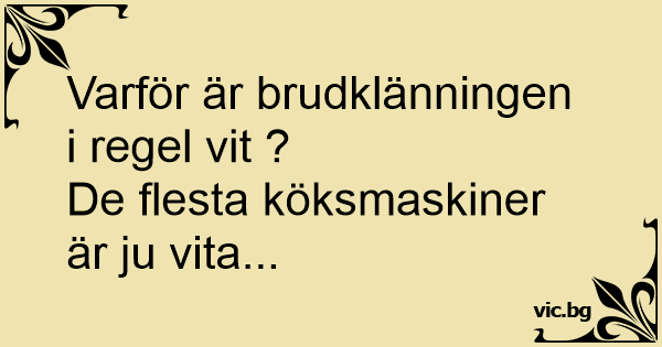 Синот ја прашува мајка си: - Мамо, зошто венчаниците се бели? Мајката одговора: - Венчаницата покажува на пријателите и Роднините дека невестата е чиста. Синот за секој случај го прашува истото...