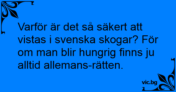 Varför är det så säkert att vistas i svenska skogar? För om man blir hungrig finns ju alltid allemans-rätten.