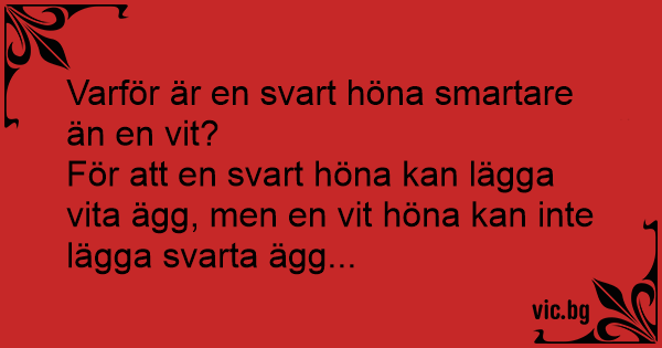 För att en svart höna kan lägga vita ägg, men en vit höna kan inte lägga svarta ägg...