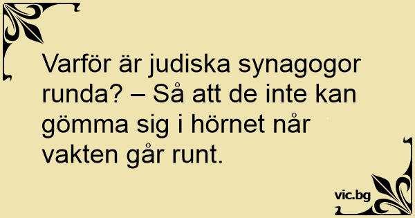 Varför är judiska synagogor runda? – Så att de inte kan gömma sig i hörnet når vakten går runt.
