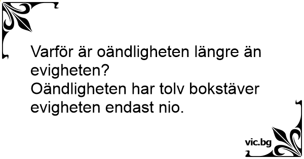 Oändligheten har tolv bokstäver evigheten endast nio.
