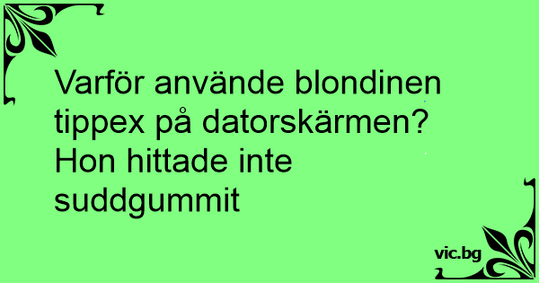 Varför använde blondinen tippex på datorskärmen?<br />Hon hittade inte suddgummit