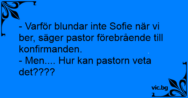- Varför blundar inte Sofie när vi ber, säger pastor förebrående till konfirmanden.