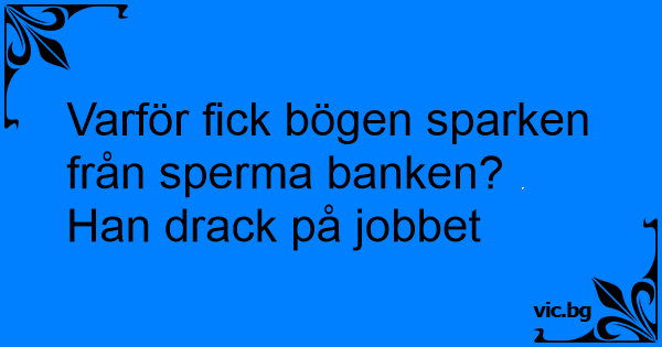 - Har du hört om bögen som jobbade på spermabanken? - ??? - Han fick sparken för att han drack på jobbet.