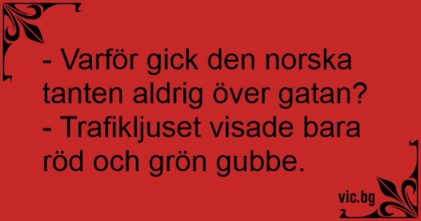 - Varför gick den norska tanten aldrig över gatan?