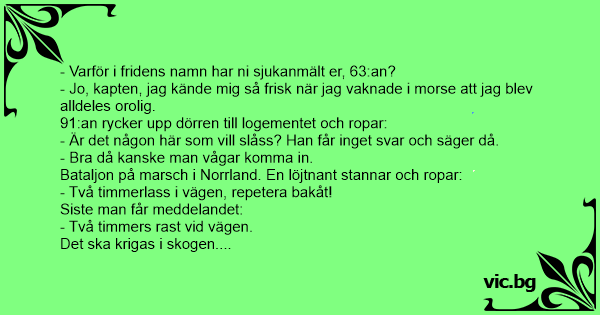 Bataljon på marsch i Norrland. En löjtnant stannar och ropar: