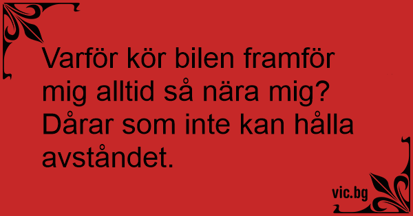 Varför kör bilen framför mig alltid så nära mig? Dårar som inte kan hålla avståndet.