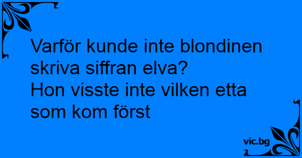 Miksi blondi ei osaa kirjoittaa lukua “yksitoista”? Hän ei tiedä, kumpi ykkönen tulee ensin.
