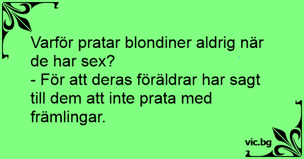 "Varför pratar aldrig blondiner när dom har sex?" "Deras mamma har sagt att de inte ska prata med främlingar!"