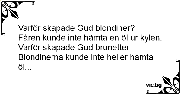 De ce a creat Dumnezeu Blonda? Simplu. oaia nu era in stare sa aduca o cutie de Bere din frigider! Dar cum de a creat Dumnezeu bruneta? Si Mai simplu, nici blonda nu era in stare sa o aduca!