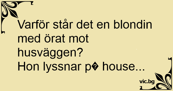 Varför står det en blondin med örat mot husväggen? Hon lyssnar p� house...