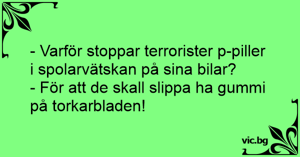 - Varför stoppar terrorister p-piller i spolarvätskan på sina bilar?