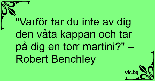"Varför tar du inte av dig den våta kappan och tar på dig en torr martini?" – Robert Benchley