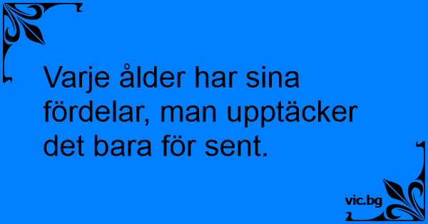 Varje ålder har sina fördelar, man upptäcker det bara för sent.