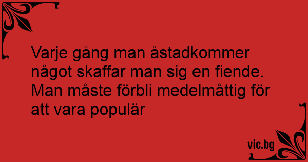 Varje gång man åstadkommer något skaffar man sig en fiende. Man måste förbli medelmåttig för att vara populär