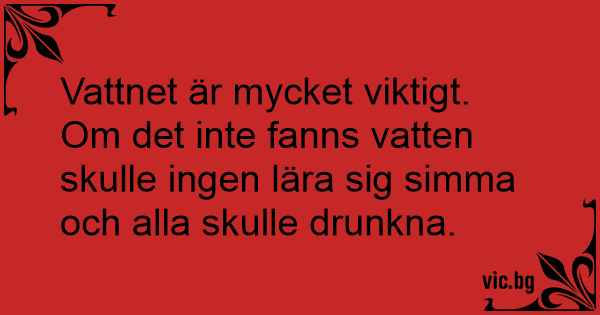 Vattnet är mycket viktigt. Om det inte fanns vatten skulle ingen lära sig simma och alla skulle drunkna.