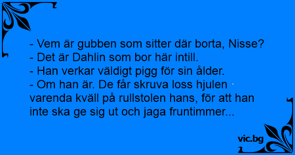 - Om han är. De får skruva loss hjulen varenda kväll på rullstolen hans, för att han inte ska ge sig ut och jaga fruntimmer...