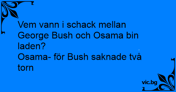 Vem vinner i schack – Bush eller Osama Bin Ladin? Det gör Bin Ladin eftersom Bush saknar två torn.