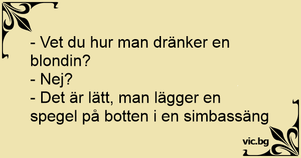 - Hur dränker man en blondin? - Sätter en spegel i botten av poolen!