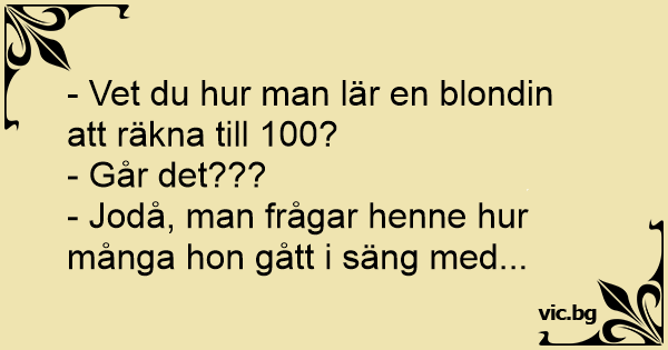 - Vet du hur man lär en blondin att räkna till 100?