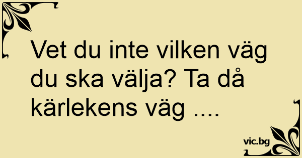 Vet du inte vilken väg du ska välja? Ta då kärlekens väg ....