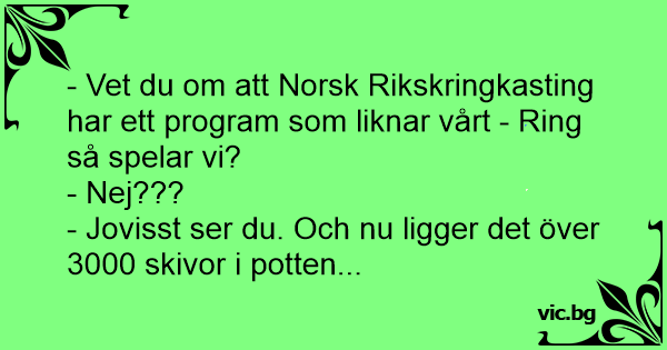 - Vet du om att Norsk Rikskringkasting har ett program som liknar vårt - Ring så spelar vi?